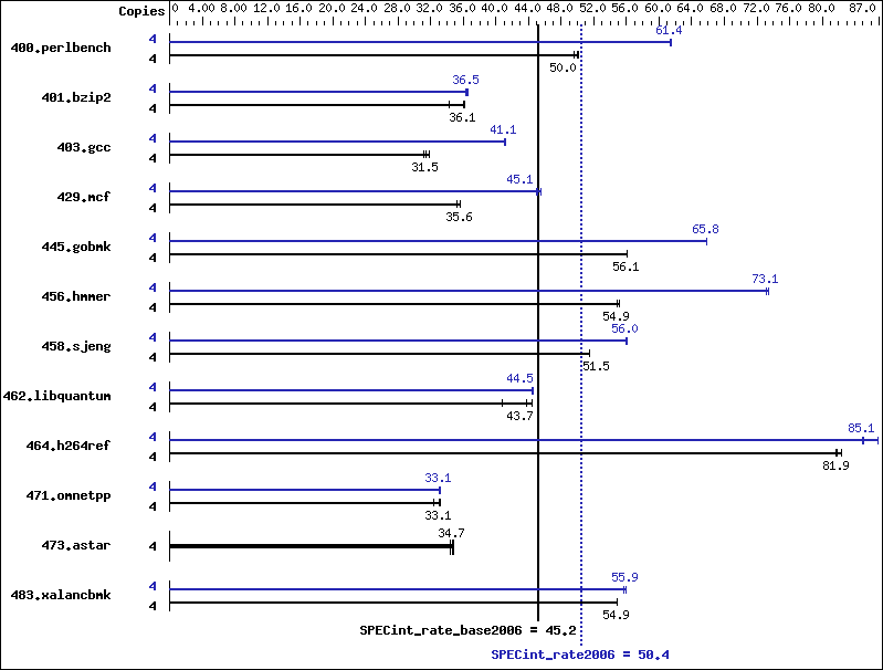 | 464.h264ref | 4 | 1084 | 81.6 | 1075 | 82.3 | 1081 | 81.9 | 4 | 1041 | 85.1 | 1019 | 86.8 | 1042 | 84.9 |