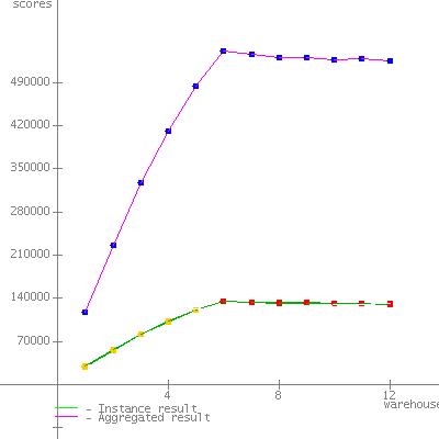 Each JVM was placed in the FX priority class with the priocntl command. Each JVM was run in its own processor set containing six cores. expected_peak_warehouse was set to 6. |