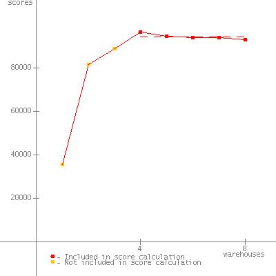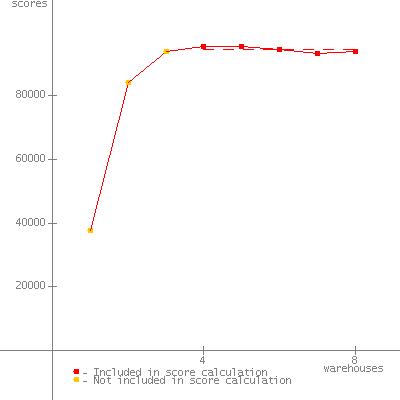 | input.expected_peak_warehouse is set to 4, because Runtime.getRuntime.availableProcessors() doesn't return number of processors in the system but return number of processors in the group which command prompt belongs to on windows 2008 R2. |