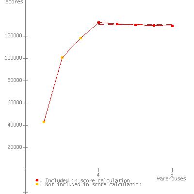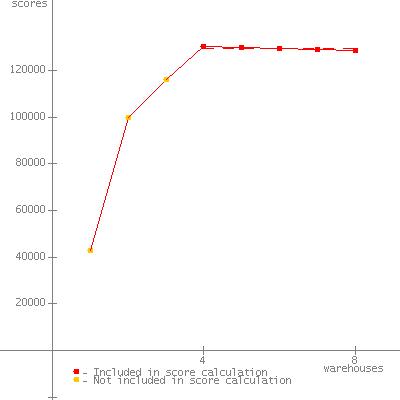 Set input.expected_peak_warehouse to 4, this is due to the fact that Runtime.getRuntime.availableProcessors() doesn't return the total number of processors in the system but instead returns the number of processors in the group which command prompt belongs to on Windows 2008 R2. |
