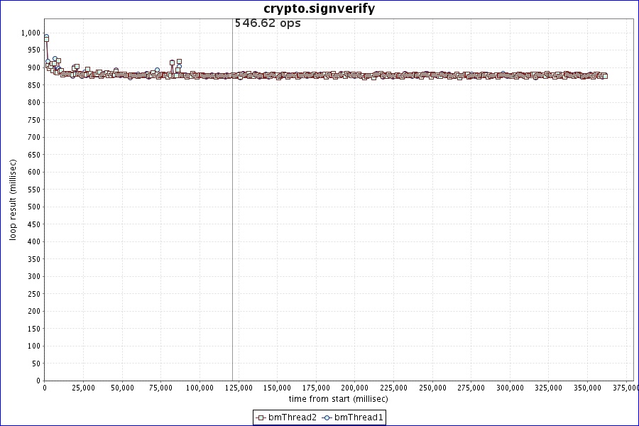 | crypto.signverify | number of threads: 2 minIter: 1 maxIter: 1 warmup time: 120000 run time: 240s |